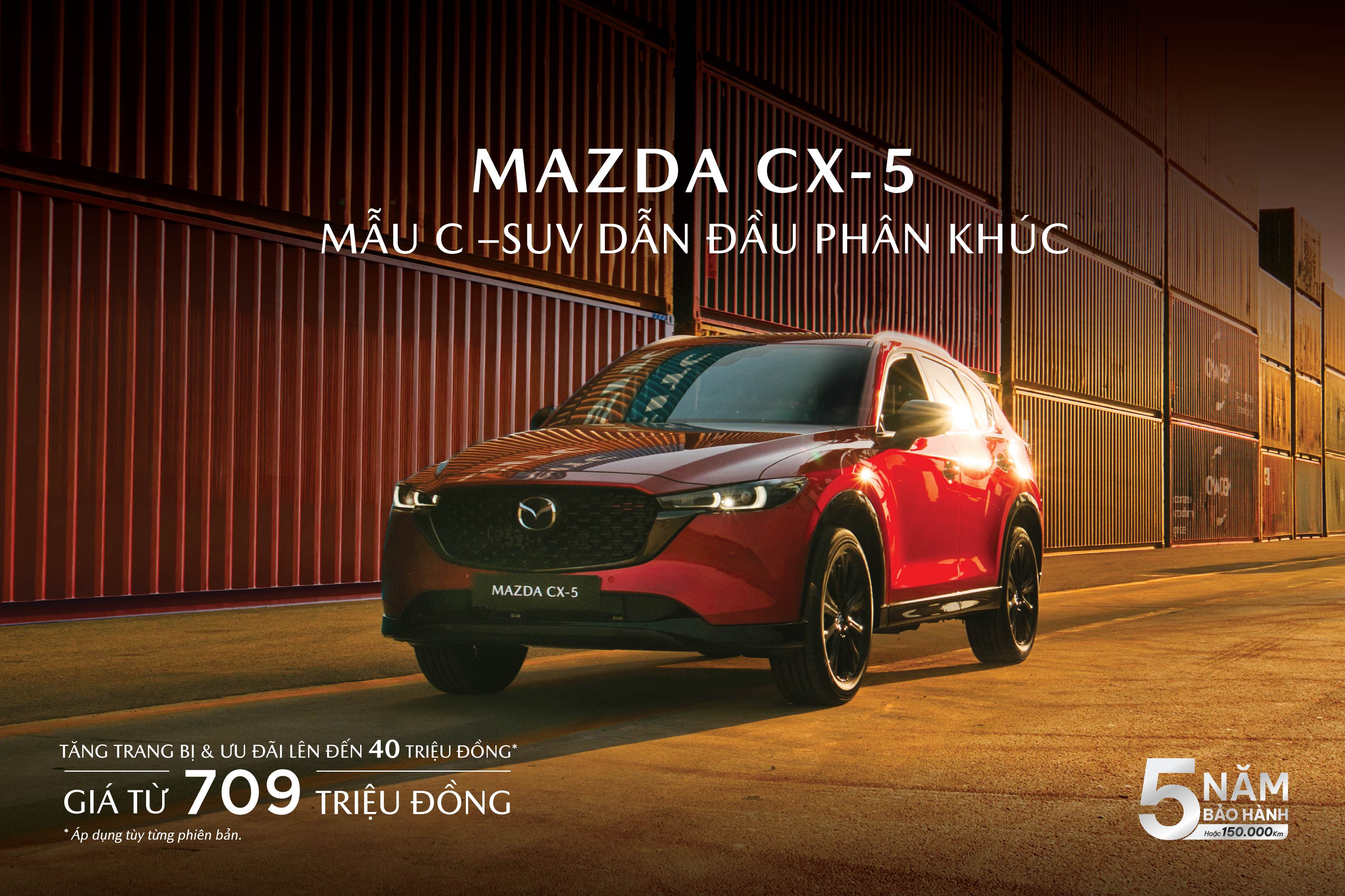 Tháng 9/2025, Mazda CX-5 tăng trang bị và ưu đãi lên đến 40 triệu đồng, giá bán sau ưu đãi từ 709 triệu đồng – mức giá tốt nhất phân khúc C-SUV hiện nay.